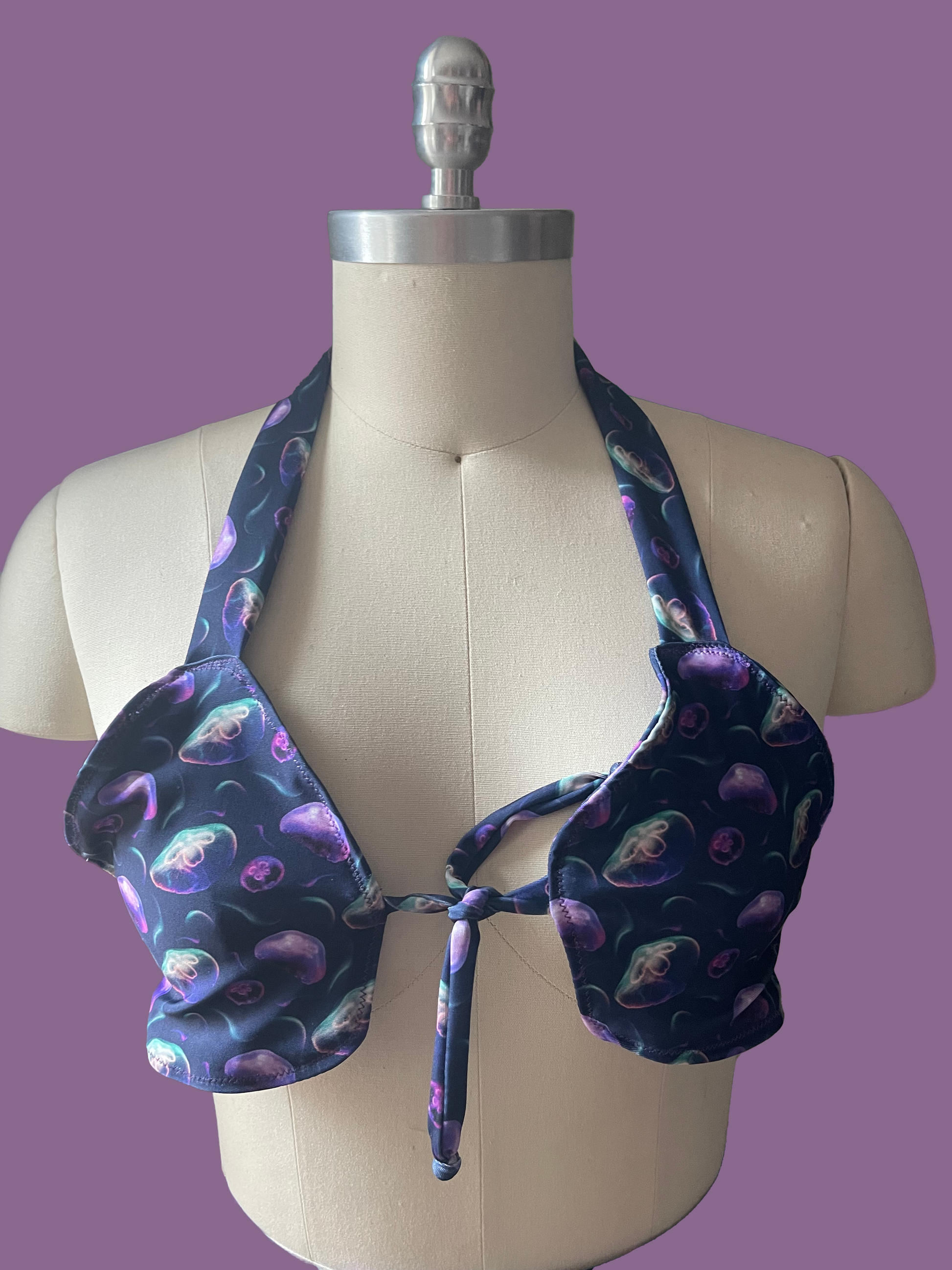 Printed synthetic halter top
